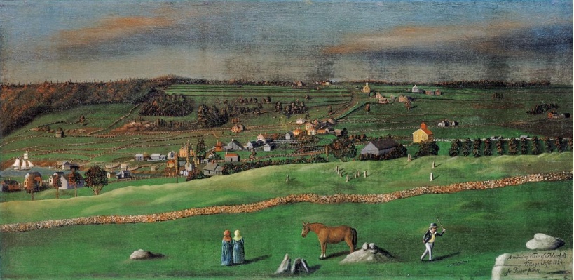 The terms of settlement spelled out by the Massachusetts General Court specified that a six mile by six mile town would be laid out and that sixty families would be settled within six years and that they “build a suitable meeting house for the public worship of God, and settle a learned Protestant minister.” At that time, the town was the parish and the parish was the town. Blue Hill had no trouble meeting the requirement of sixty families and they built a meeting house, but for twenty-six years they had no minister. Finally, in 1794, they were able to attract a graduate of Harvard Divinity School named Jonathan Fisher. Fisher was offered a house lot and 300 acres of woodland, a barn that measured forty by fifty, and $200 a year. He accepted those terms and for forty-seven years led the community from the pulpit of the Congregational Church.