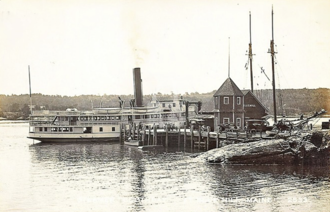 As the twentieth century neared, Blue Hill was discovered by a wealthier cultured class of summer visitors who were looking to get away from the hustle and bustle of the city to a simpler, more rustic lifestyle. A boarding house called “The Homestead” was erected by Isaac Parker to cater to this crowd and Parker Point became the scene of croquet matches and fashionable clothing. Many of the rusticators bought land on Parker Point and had summer cottages built. In 1896 George Stover opened the Blue Hill Inn on South St. The Inn offered electric lights, long distance telephone, telegraphic office, saddle horses and smart livery as well as a scenic view of the harbor. Mr. Stover hosted public performances by a small orchestra on Saturday evenings and there the rusticators and the town residents intermingled. To accommodate the new demand, steamboat service to Blue Hill was started with landings in the inner harbor and on Parker Point. As the granite business wound down and the tourist trade increased, George Trask came to East Blue Hill and was so impressed that he telegraphed his friend Dr. Seth Milliken who was on his honeymoon in Cape May, New Jersey. “Have found paradise. Come quickly.” Dr. Milliken read the telegram and turned to his bride and said, “Honey, we’re going to East Blue Hill, wherever the hell that is.” The rusticators brought new opportunities to the area and expanded cultural and recreational activities that still make Blue Hill a special place to visit.